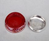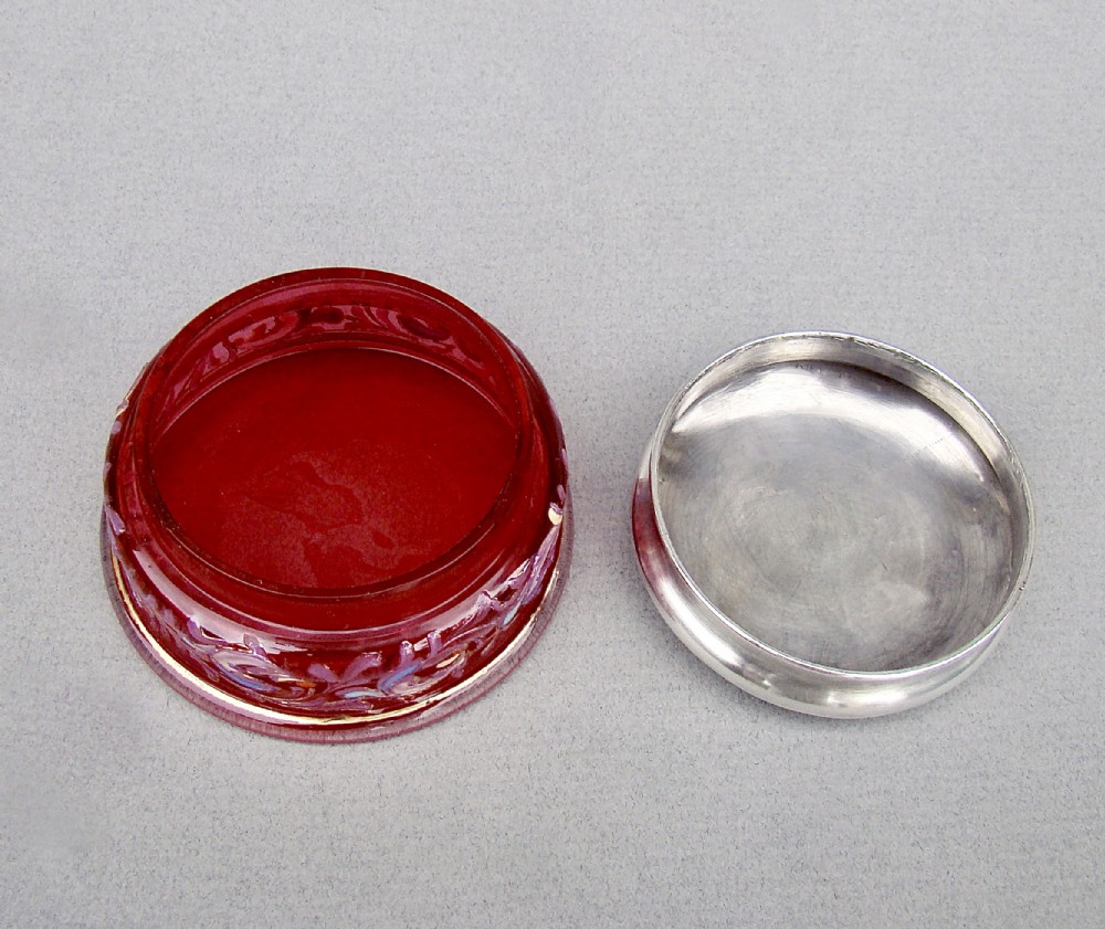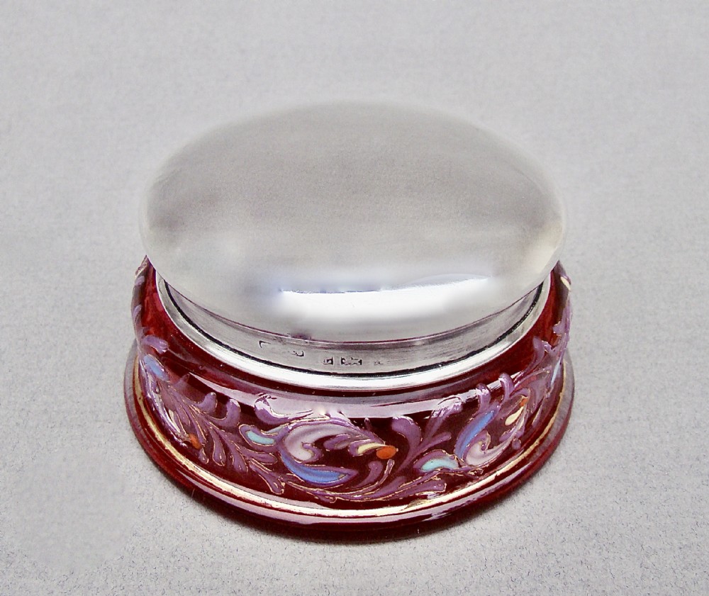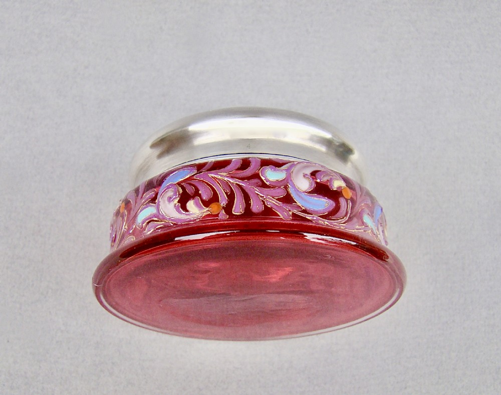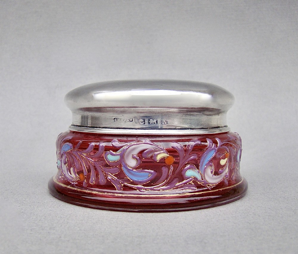 delightful silver lidded enamelled cranberry glass trinket box birmingham 1922