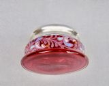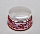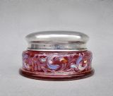 DELIGHTFUL SILVER LIDDED ENAMELLED CRANBERRY GLASS TRINKET BOX, BIRMINGHAM 1922
