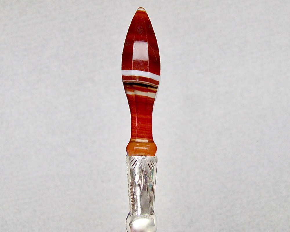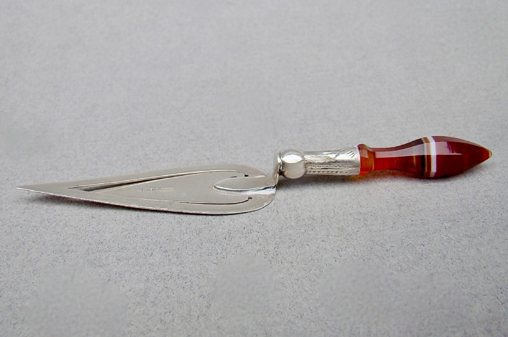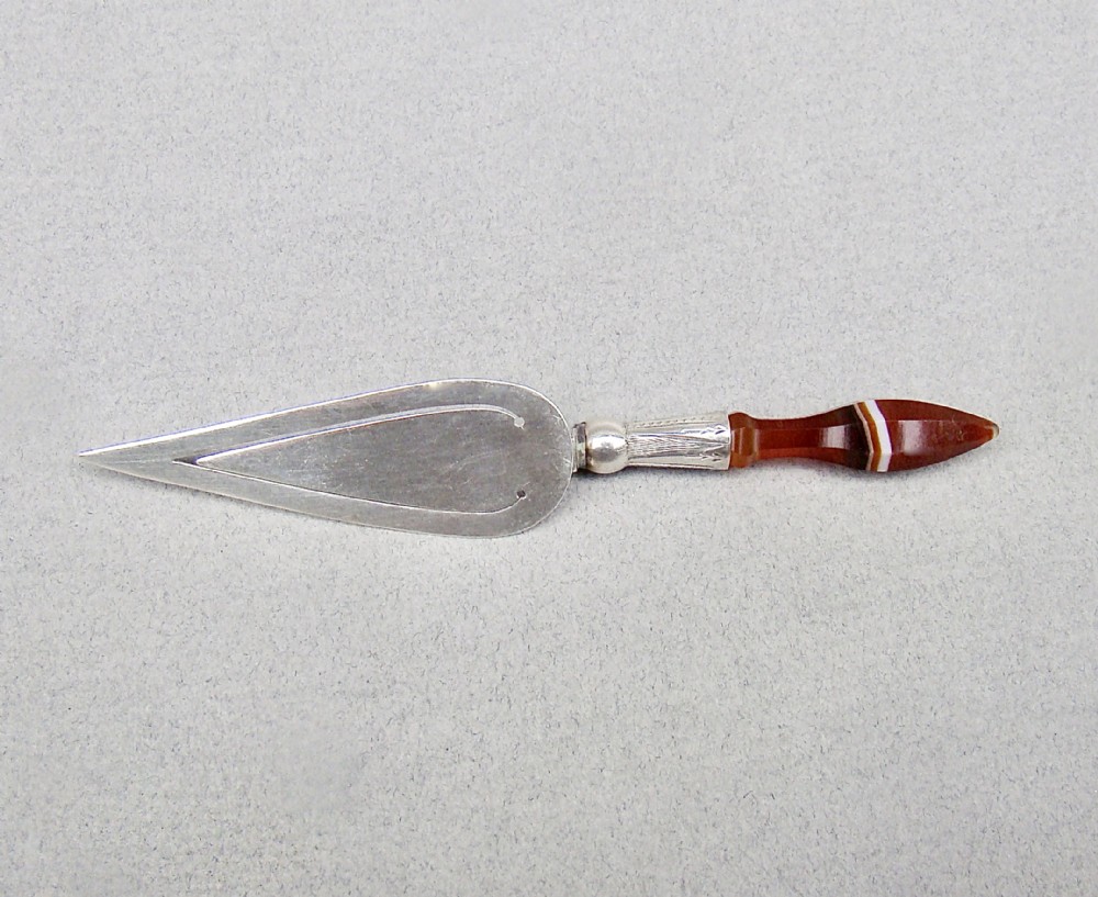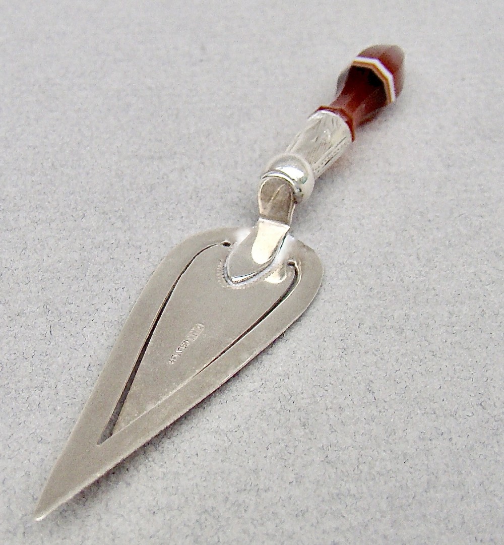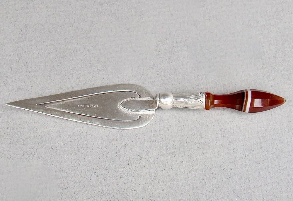SILVER AND BANDED AGATE TROWEL BOOKMARK BY CRISFORD & NORRIS, CIRCA 1910