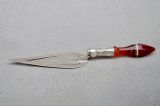 This unusual silver and red banded agate "trowel" bookmark bears the marks of Crisford & Norris and dates circa 1910. The engraved silver ferrule inset with a faceted baluster-shaped banded agate handle. The blade hallmarked for Crisford and Norris. it is a large example, making it very useable. Hallmarks: C&N for Crisford & Norris. Impressed" "SILVER". Dimensions: Length: 10.5cm / 4.1 inches. Maximum width: 2cm / 0.6 inches. Condition: Very good. Agate handle in excellent condition. Clear Hallmarks. Postage: PLEASE DO NOT FORGET TO ADD POSTAGE AT CHECKOUT. UK: £5 Royal Mail tracked 24. Postage overseas: £15 International Signed For. Postage USA (including US import duties): £30.00 You can pay by PayPal, bank transfer, cheque, debit or credit card. To pay by PAYPAL please add P&P and click on button below. To pay by credit or debit card over the phone or by cheque, please contact me on 01449 760 585. Internal Ref: MAR82