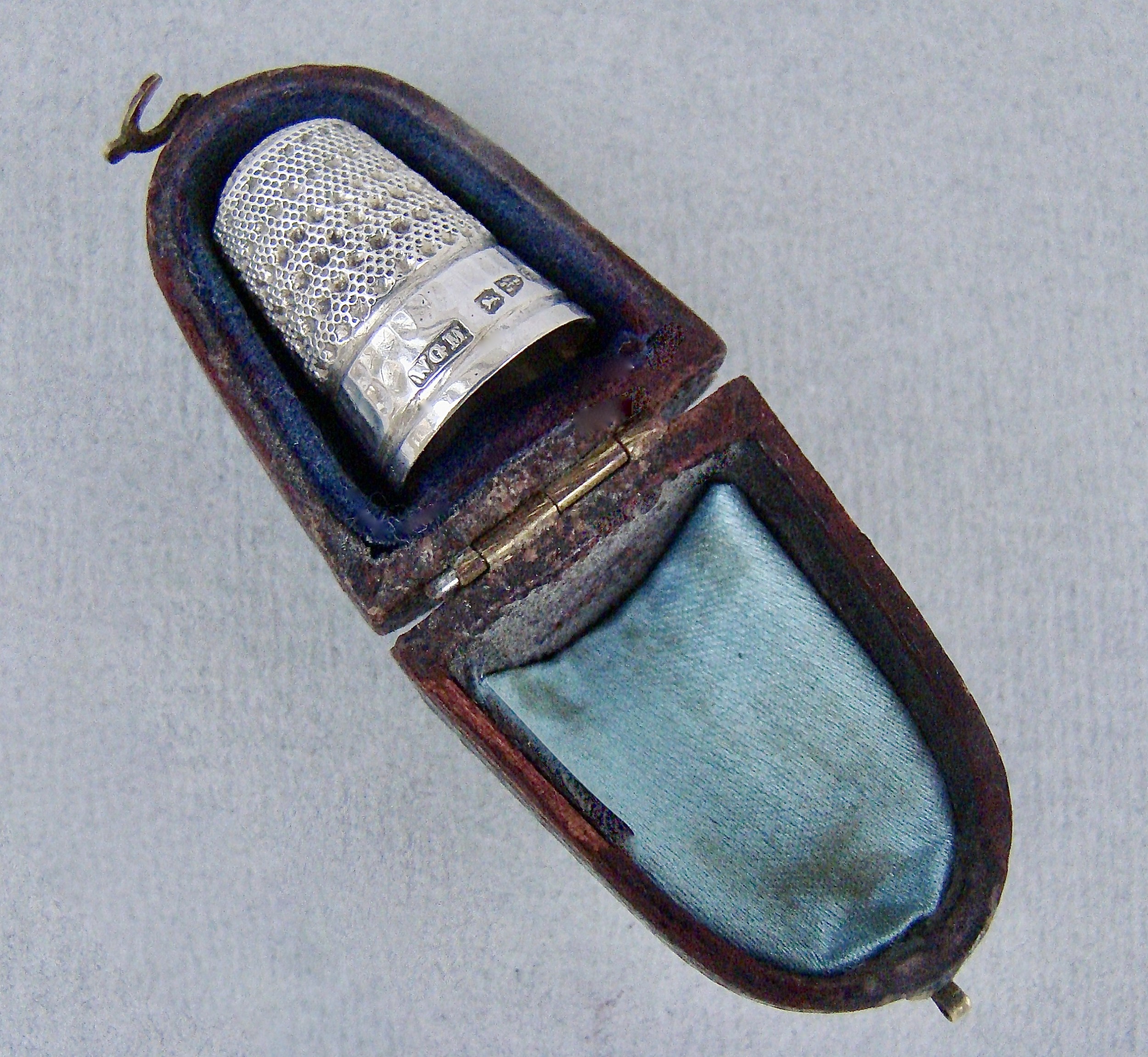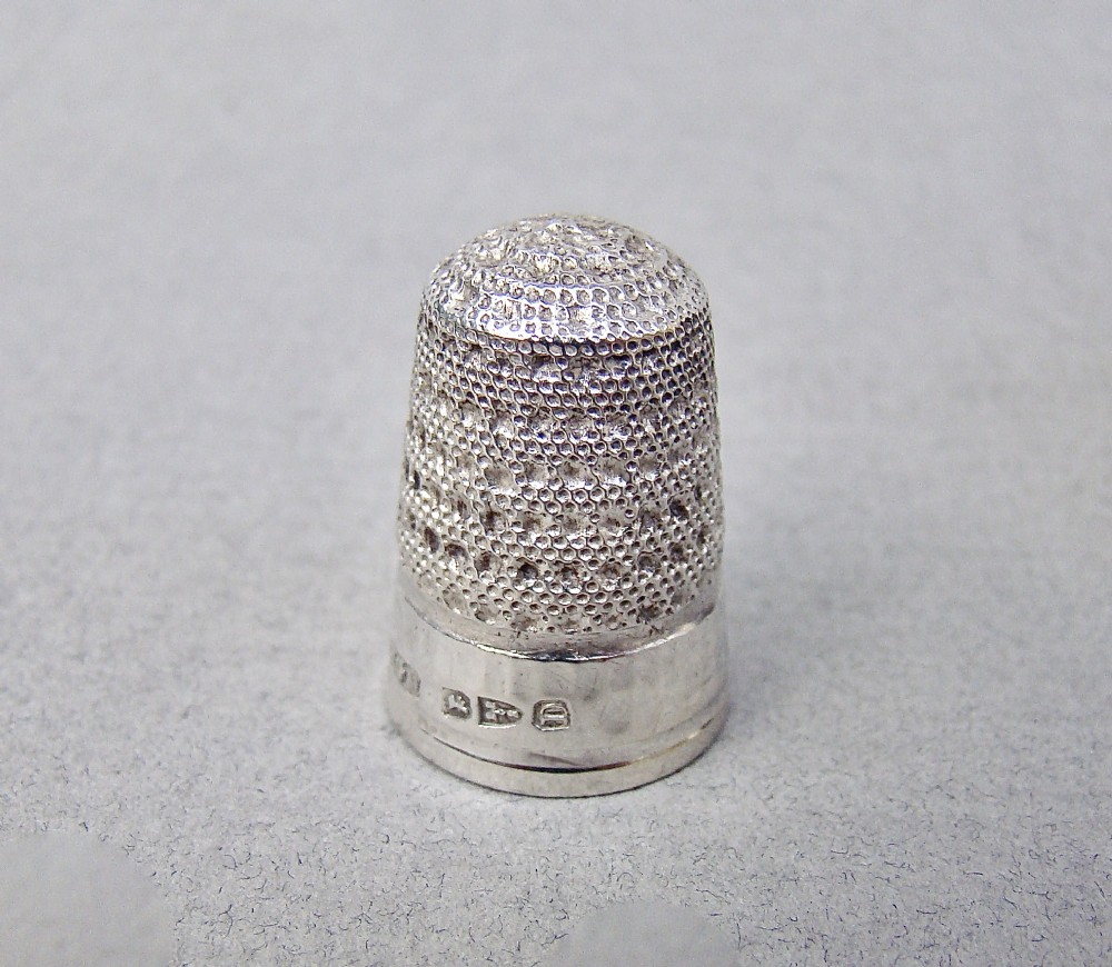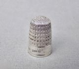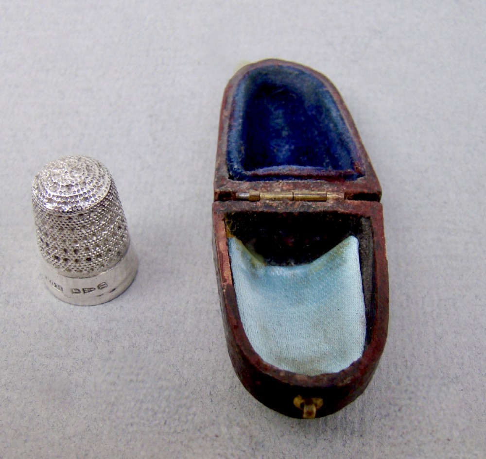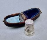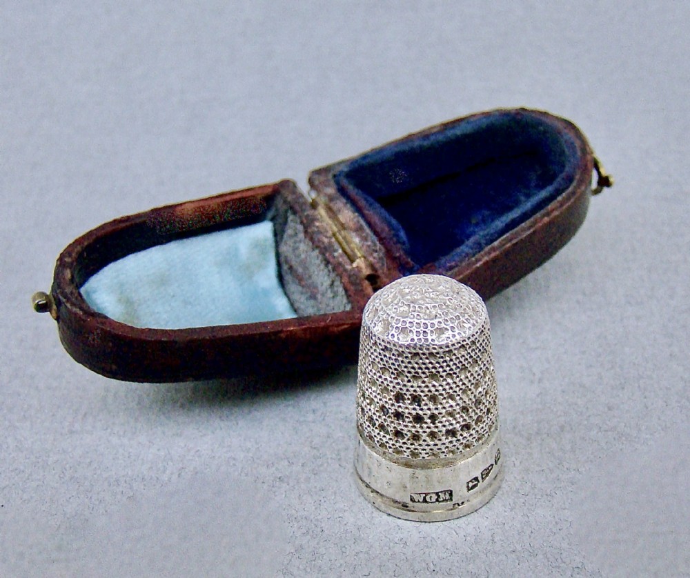 CASED VICTORIAN SILVER THIMBLE BY WALTER & GEORGE MYERS, CHESTER 1887
