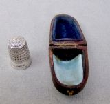 This delightful and rather unusual Victorian sterling silver thimble is dated Chester 1887 and bears the marks of Walter & George Myers. The lower section of the thimble with decorative punch marks. It is fully hallmarked and fits snuggly in its original leather case lined with velvet and satin. Hallmarks: W.G.M for Walter & George Myers Lion Passant. Chester Assay Mark. Date letter "D" for 1887. Dimensions: Height of the case: 3.5 cm Height of the thimble: 2.5cm Diameter: 1.6cm Condition: Very good. Both silver thimble and case in very good condition. Postage: PLEASE DO NOT FORGET TO ADD POSTAGE AT CHECKOUT. UK: £5 Royal Mail tracked 24. Postage overseas: £15 International Signed For. Postage USA (including US import duties): £30.00 You can pay by PayPal, bank transfer, cheque, debit or credit card. To pay by PAYPAL please add P&P and click on button below. To pay by credit or debit card over the phone or by cheque, please contact me on 01449 760 585. Internal Ref: MAR66