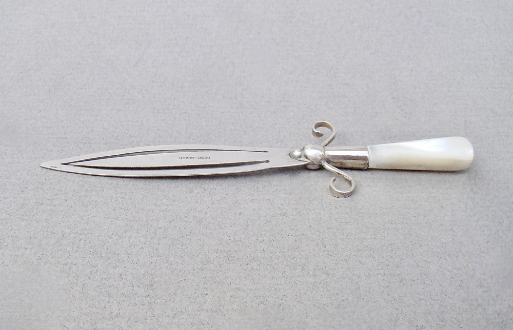 GEORGE V SILVER & MOTHER OF PEARL SWORD SHAPED BOOKMARK BY CRISFORD & NORRIS, CIRCA 1910