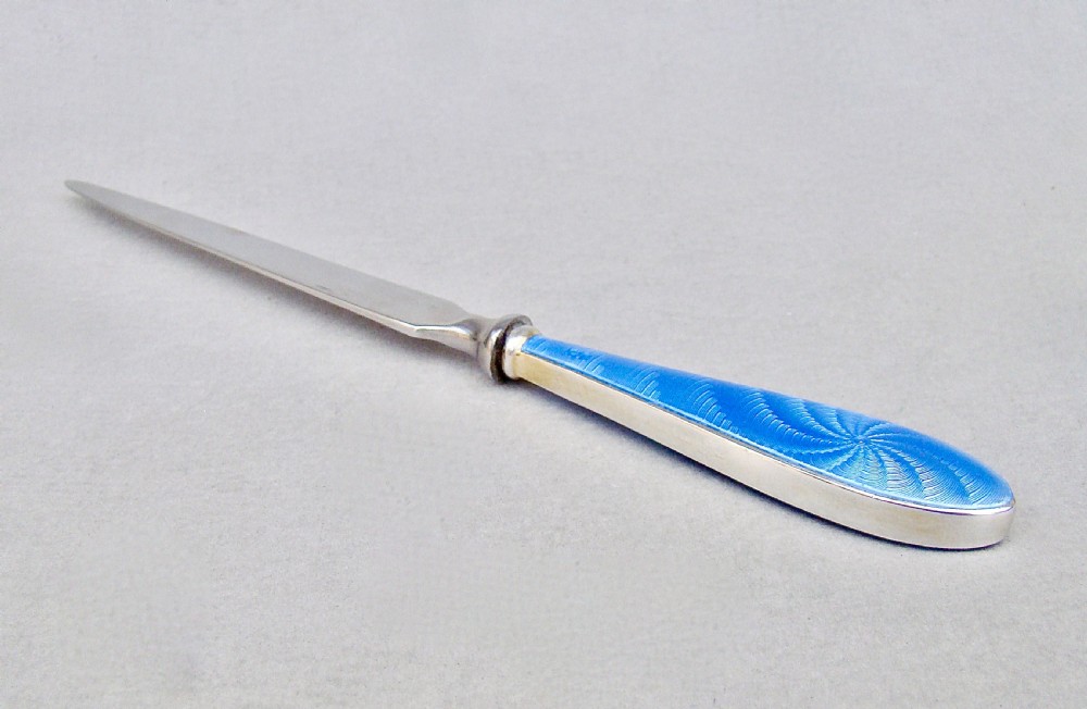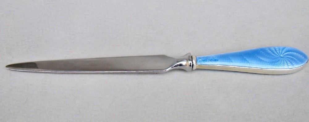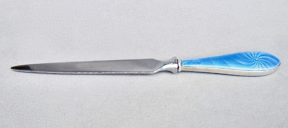 ART DECO SILVER & ENAMEL HANDLED LETTER OPENER BY W.I. BROADWAY & CO BIRMINGHAM 1929