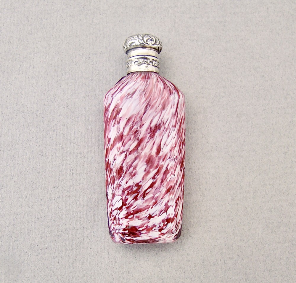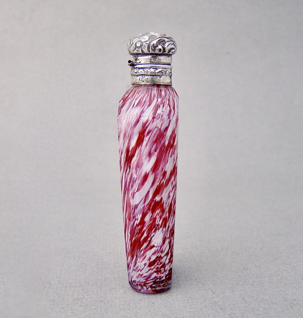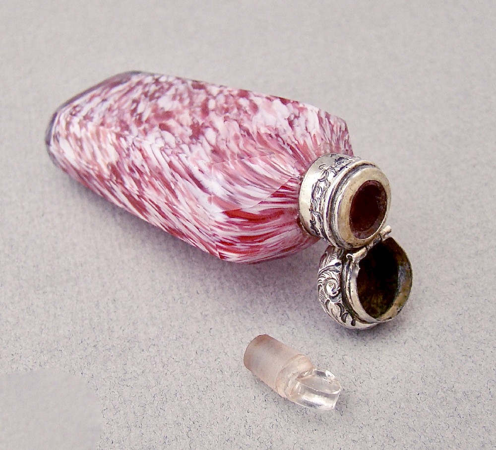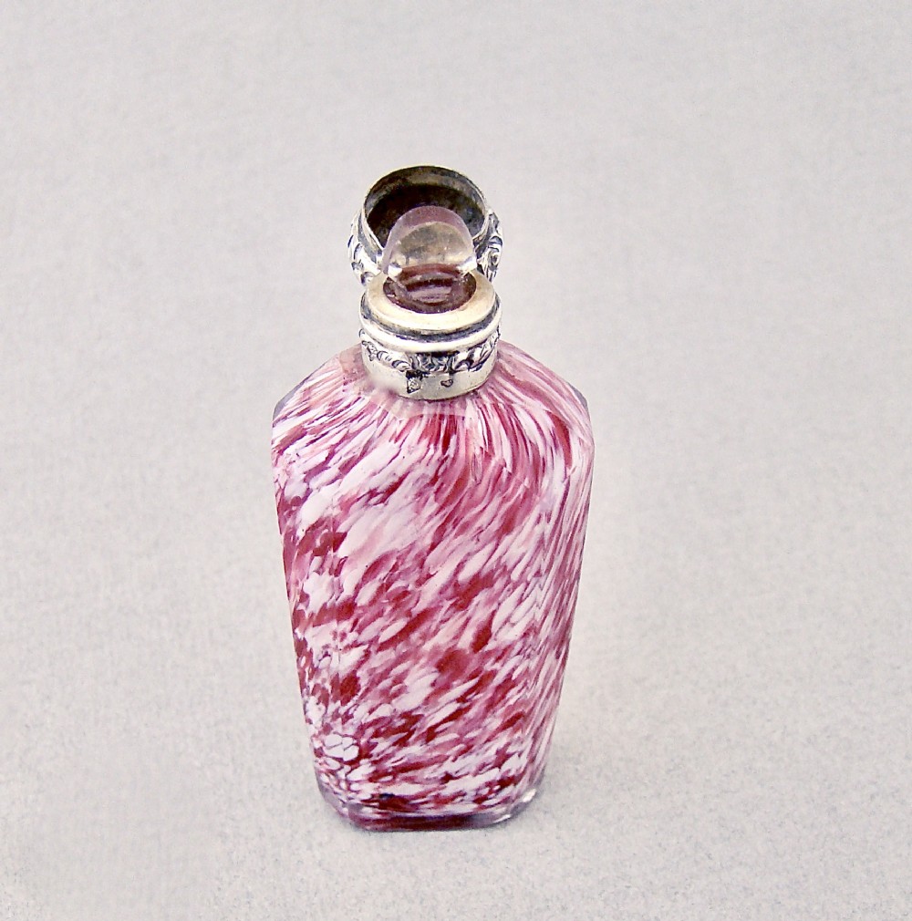 RARE 19TH C. FRENCH SILVER CLICHY GLASS SCENT BOTTLE, CIRCA 1870