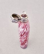 This fabulous 19th Century French silver Clichy "pate de verre" scent bottle dates circa 1870. The sliced-cut glass slender body a stunning pink mottled glass colour The neck mounted with a beautiful embossed hinged silver lid and fitted with a clear glass stopper. Hallmarks: Boar head in a lozenge (French mark for small articles) Maker's mark. Dimensions: Height: 7.5cm - 2.6 inches. Maximum width: 3cm / 1.2 inches. Depth: 1.5 cm / 0.4 inches. Condition: Excellent. Glass in very good condition. Inside of neck in excellent condition. No cracks. Silver lid in very good condition. Delivery: PLEASE DO NOT FORGET TO ADD POSTAGE AT CHECKOUT. Postage UK: £10.00 Royal Mail Special Delivery. Postage overseas: £25 International Signed For. PLEASE DO NOT FORGET TO ADD POSTAGE AT CHECKOUT. Postage UK: £10.00 Royal Mail Special Delivery. Postage overseas: £20 International Signed For. Postage USA (including US import duties): £75.00 You can pay by PayPal, bank transfer, cheque, debit or credit card. To pay by PAYPAL please add P&P and click on button below. To pay by credit or debit card over the phone or by cheque, please contact me on 01449 760 585. Internal Ref: AVR78
