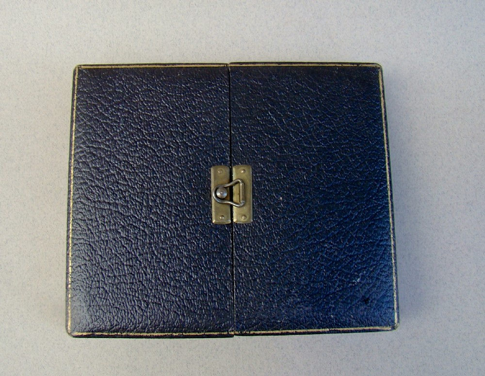 Fitted in the original Morroco black leather case, the interior lined with cream satin and black velvet.