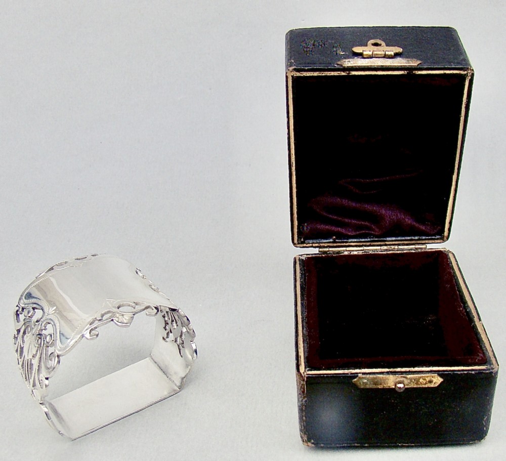 STUNNING CASED EDWARDIAN SILVER NAPKIN RING BY LEVESLEY BROTHERS, SHEFFIELD 1905