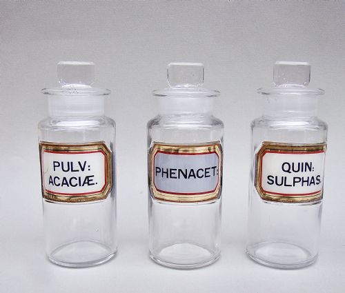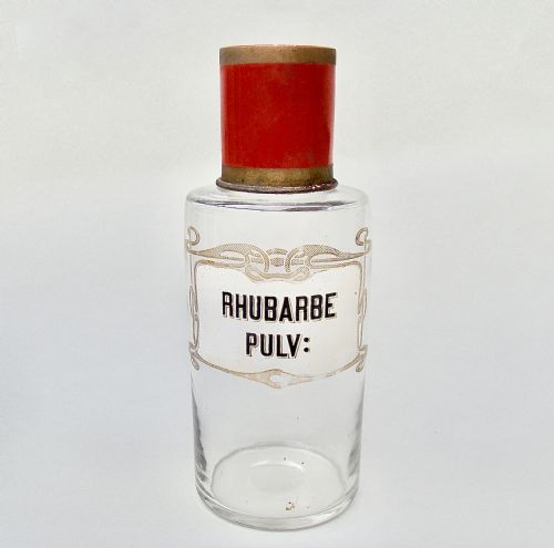 This is a very decorative and unusual set of three 19th Century French amber glass apothecary jars. Each with the original etched glass label and "tole peinte" cover. The etched label with Latin inscriptions "Tinct" meaning tincture. One for Vanilla, the other Cinnamon the other coconut palm, which are rather evocative of some exotic shores. The necks with the orginal red litho painted tole lids, showing signs of age with wear to the paint and oxidisation. The bases with smooth pontil marks.